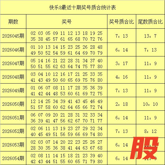 第十位:上期开出合数奖号40,奖号尾数0为合数尾数,最近20期该位质尾奖号奖号出现8次,合尾奖号出现12次,合尾奖号表现较热,最近10期第十位奖号尾数质合比为3:7,目前质尾奖号仅轮空1期,本期注意质尾号码反弹,关注号码47。