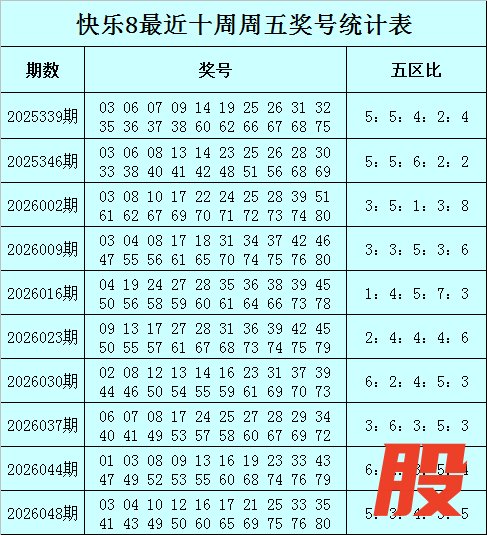 福彩快乐8第2026048期(上周五)开奖回顾:03 04 10 12 16 17 21 25 33 35 41 43 49 50 60 65 69 75 76 80,其中奖号五区比为5:3:4:3:5。